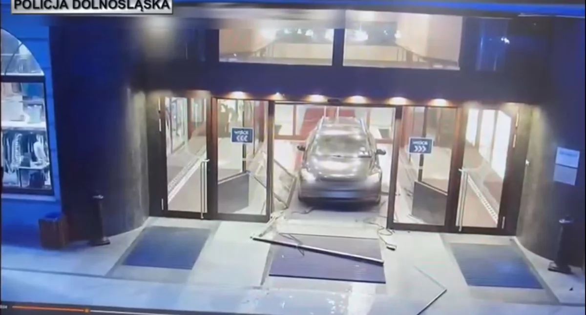 Staranował drzwi i wjechał do hotelowego holu. Zapłaci 50 tys. zł za zniszczenia. Policja publikuje nagranie z Karpacza