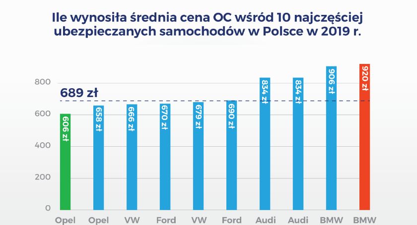 Średnia cena OC w Polsce w 2019 roku wyniosła 689 zł. W pierwszej 5 znalazły się 2 modele,