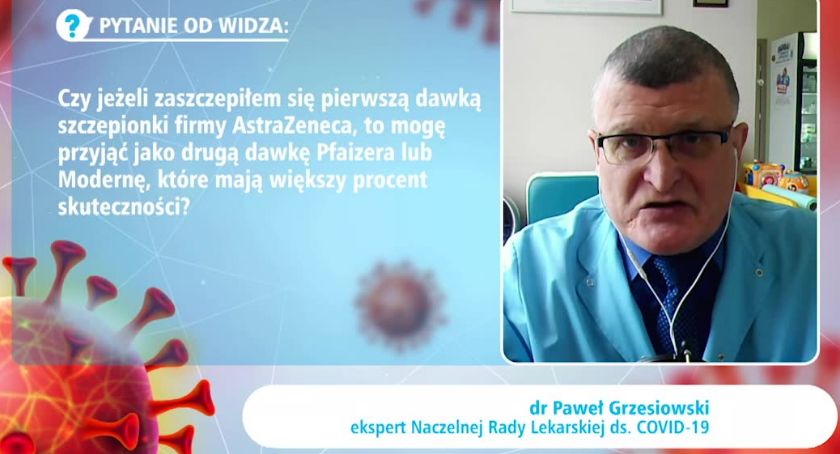 Czy jeżeli osoba zaszczepiła się pierwszą dawką szczepionki firmy AstraZeneca, to czy może przyjąć jako drugą dawkę Pfizera lub Modernę? Na to pytanie odpowiedział dr Paweł Grzesiowski.