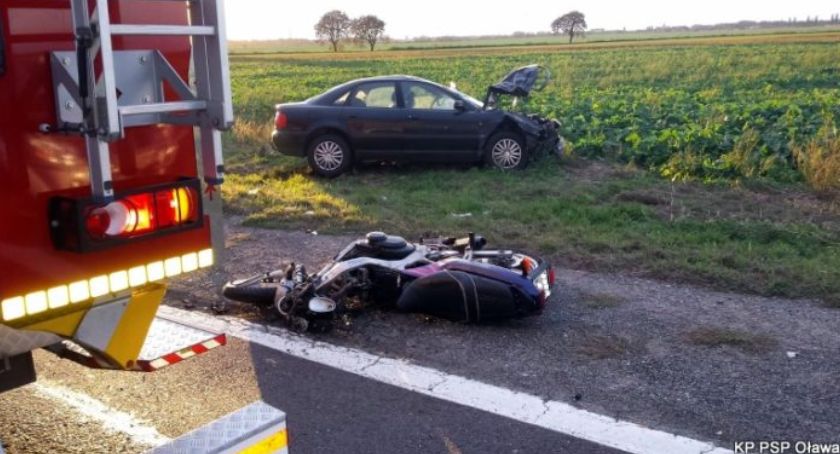 Tuż po godzinie szesnastej, we wtorek 1 października 2019 roku do Stanowiska Kierowania Komendanta Powiatowego trafiło zgłoszenie o wypadku dwóch pojazdów – motocykla i samochodu osobowego, za wiaduktem nad A4 w kierunku na Brzeg. Z informacji wynikało, że dwie osoby zostały poszkodowane.