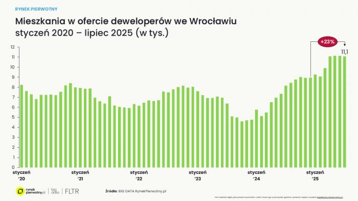 Złożyły się na to trzy czynniki. Przede wszystkim ten rok wrocławscy deweloperzy rozpoczęli z ogromnym animuszem. W efekcie w pierwszym półroczu wprowadzili do sprzedaży więcej mieszkań niż sprzedali, a oferta urosła do rekordowych rozmiarów. Pod koniec lipca kupujący mieli do wyboru ponad 11,1 tys. mieszkań, a ich liczba zwiększyła się w tym roku aż o blisko jedną czwartą.