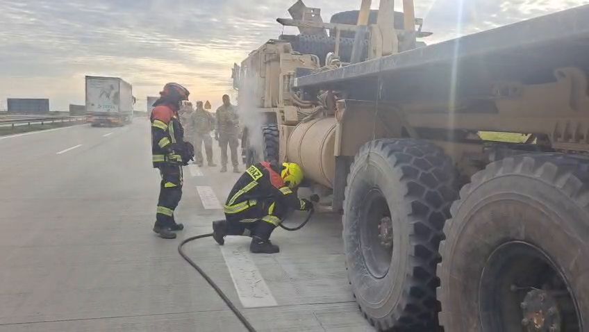 POŻAR POJAZDU WOJSKA AMERYKAŃSKIEGO NA A4. UWAGA NA UTRUDNIENIA W RUCHU. FILM