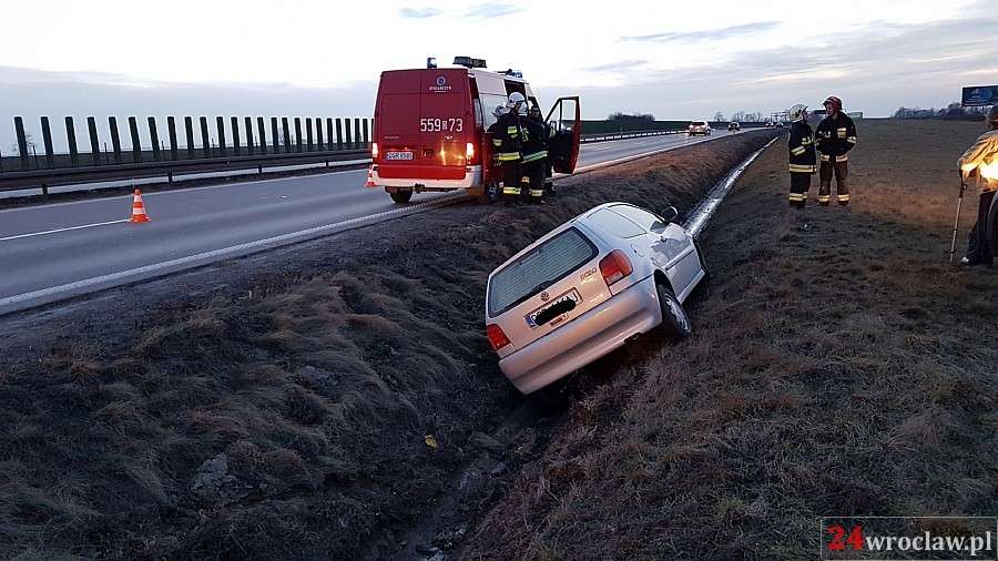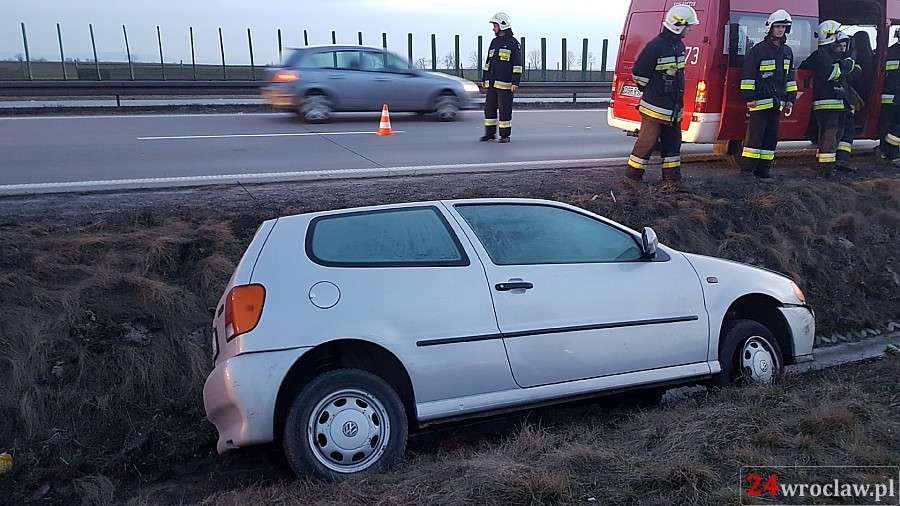 Auto w rowie na autostradzie A4