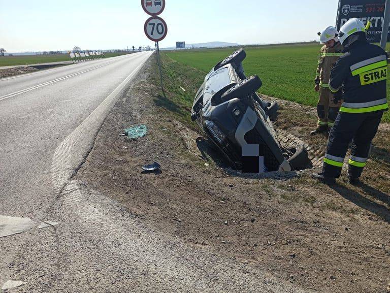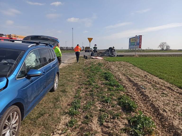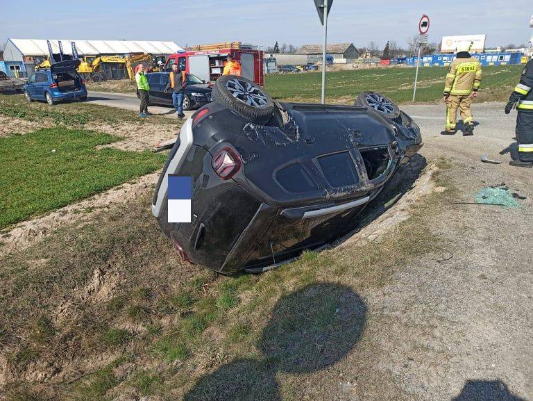Dacia na dachu po zderzeniu z volkswagenem