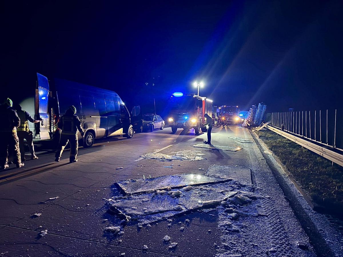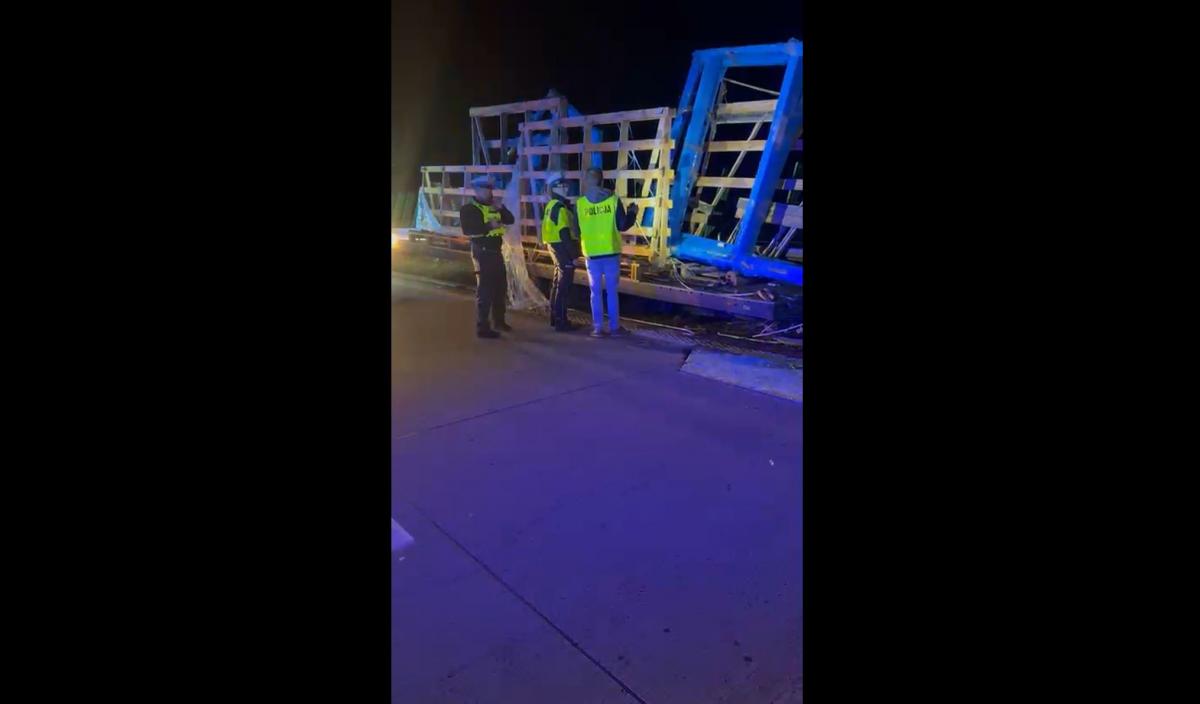 Dramatyczne chwile na A4. Oderwana przyczepa z ładunkiem okien zniszczyła barierki i stanęła na pasie ruchu. O krok od tragedii