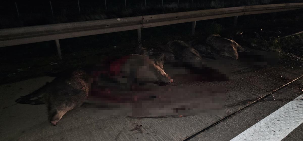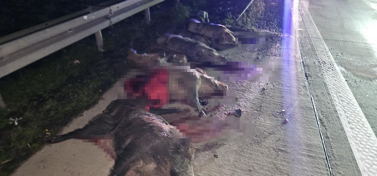 Dwa busy uderzyły w stado dzików na A4. 9 zwierząt nie przeżyło