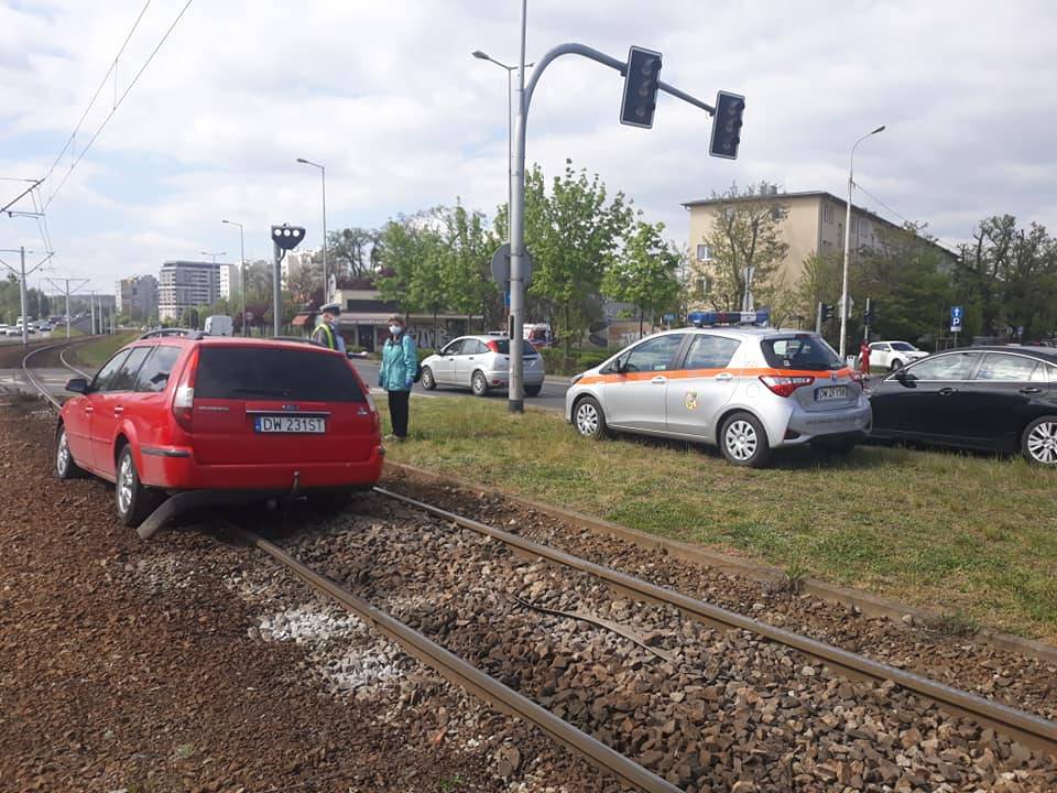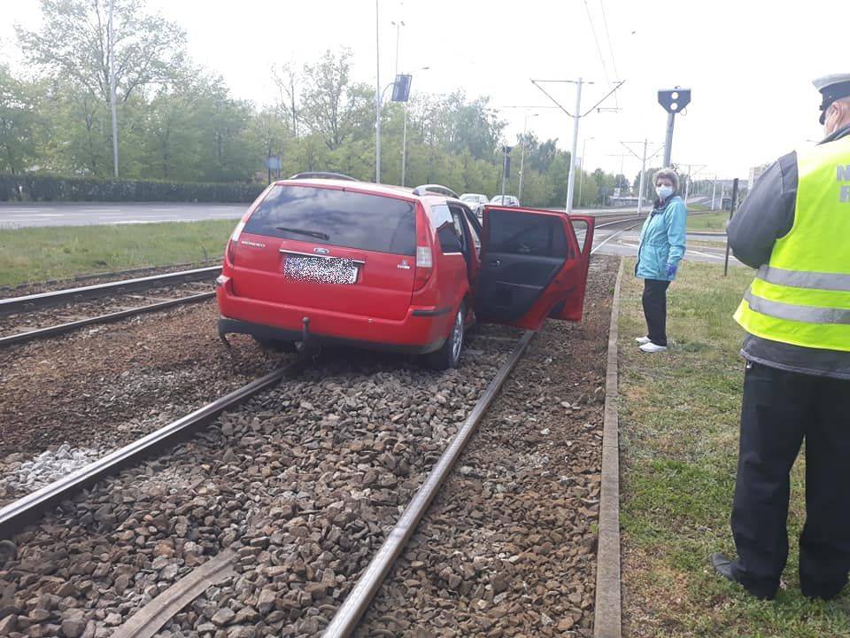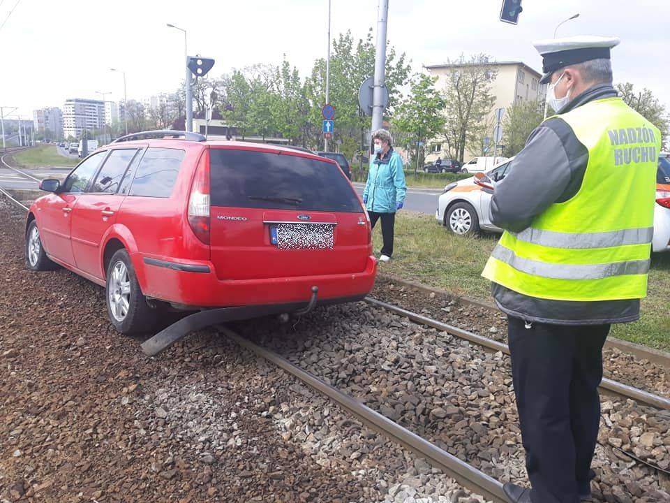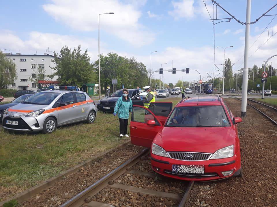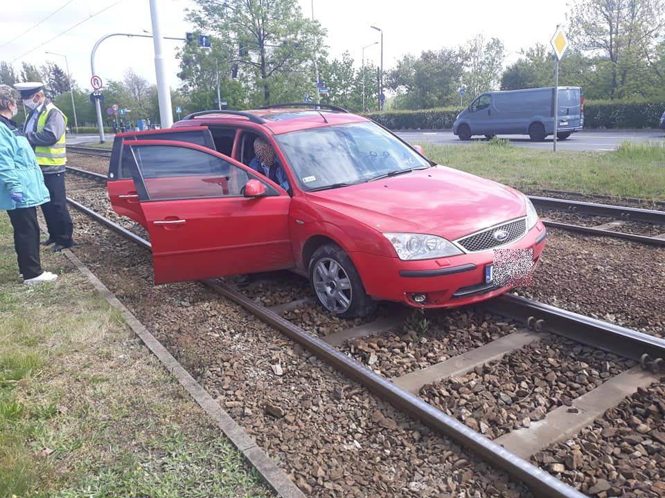 Ford na torowisku tramwajowym