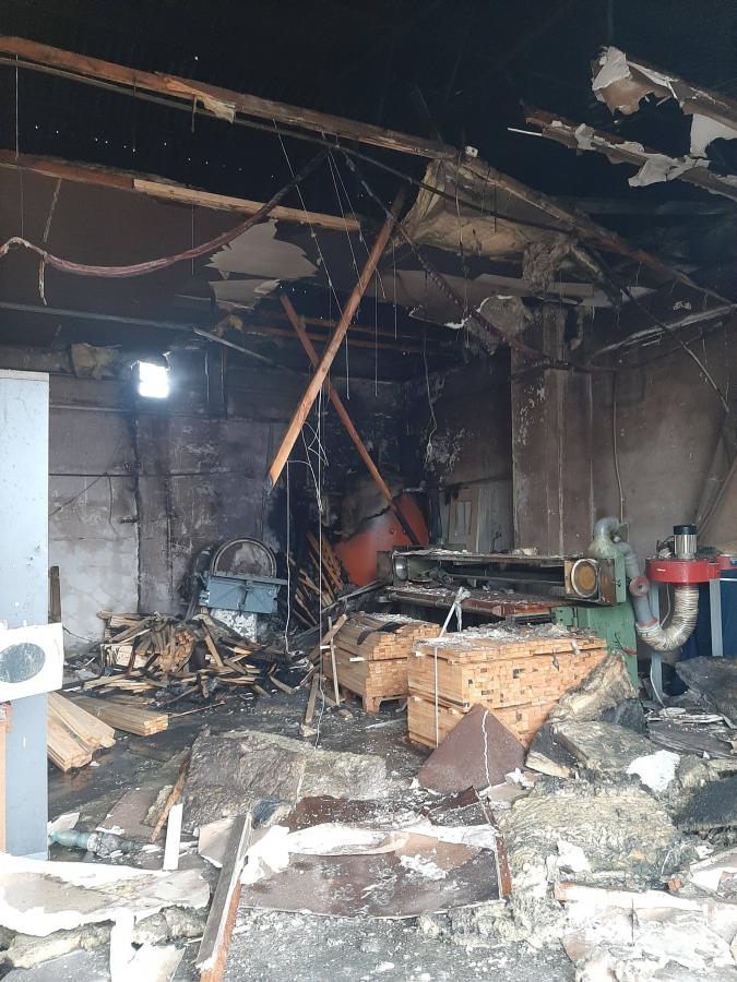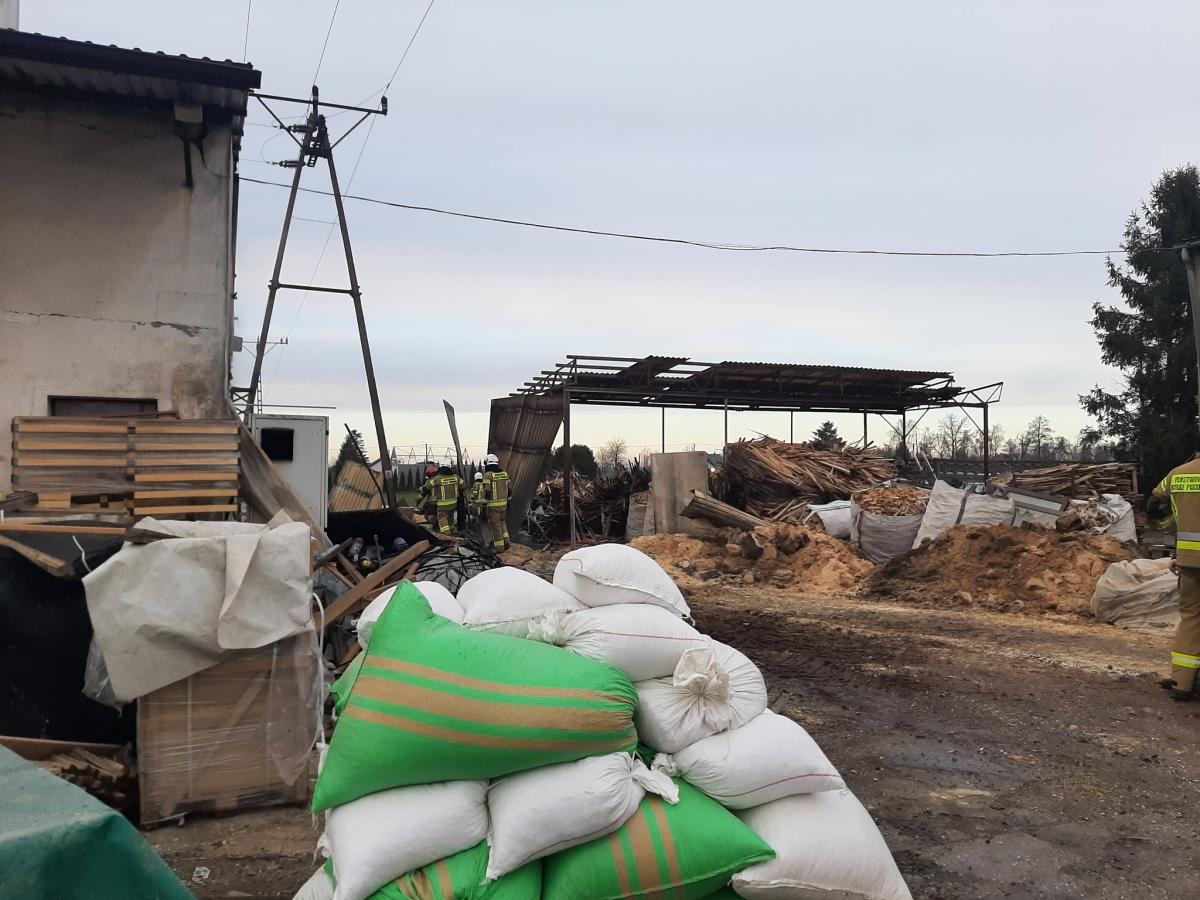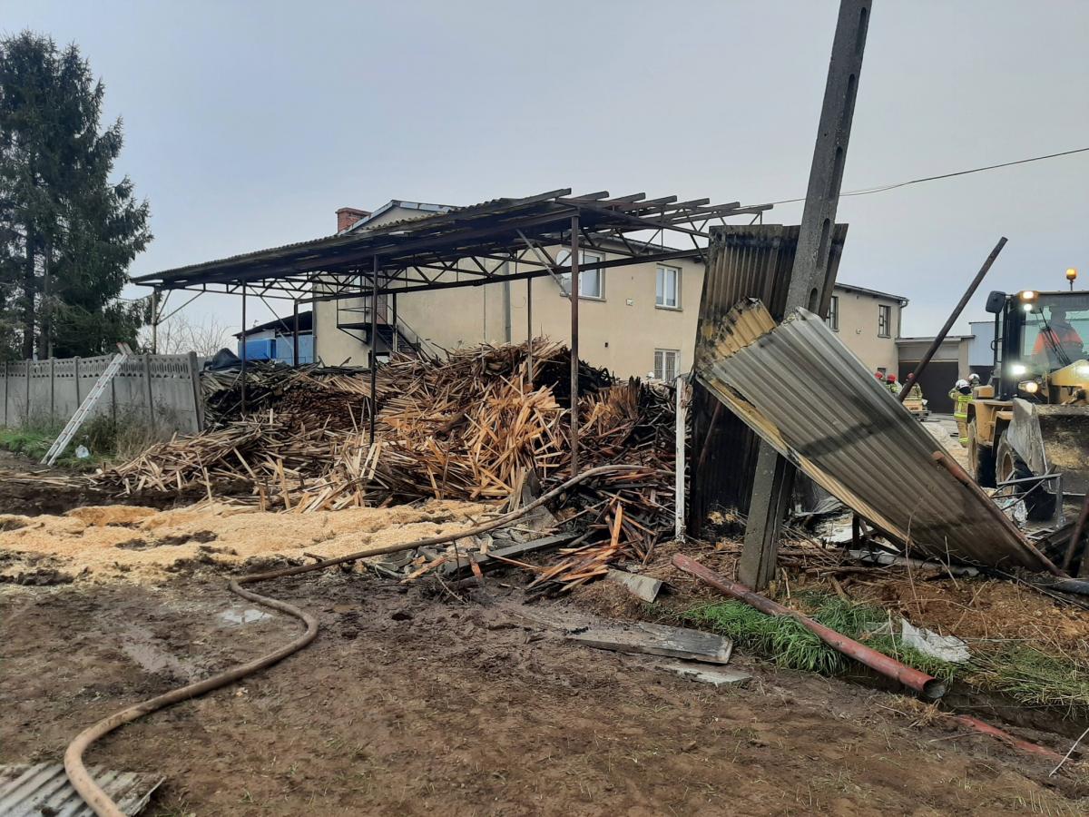 Groźny pożar w gminie Syców. Spłonęły trociny i fragment hali produkcyjnej