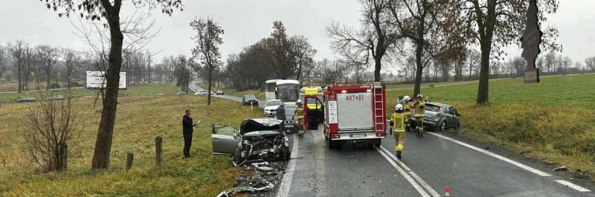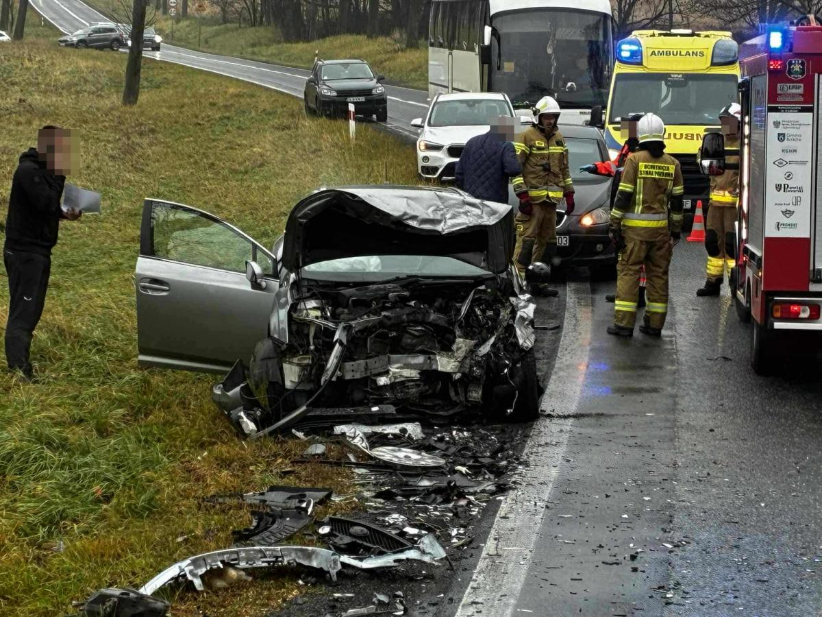 Groźny wypadek na DK5 w Mysłowie. Dwa rozbite auta i trzy osoby pod opieką ratowników medycznych