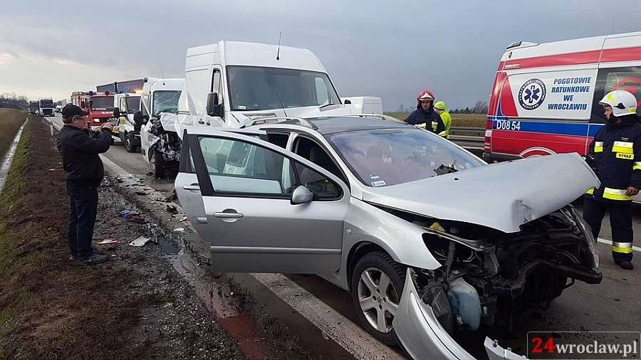 Zdjęcia Karambol 4 aut na autostradzie A4 - fotorelacja