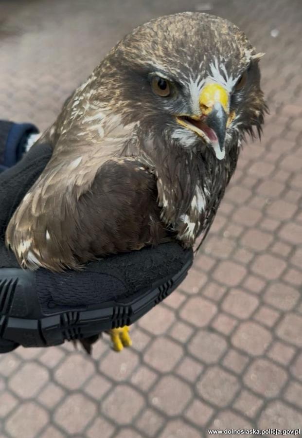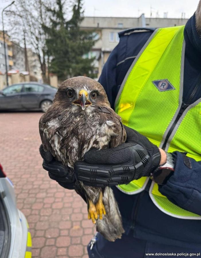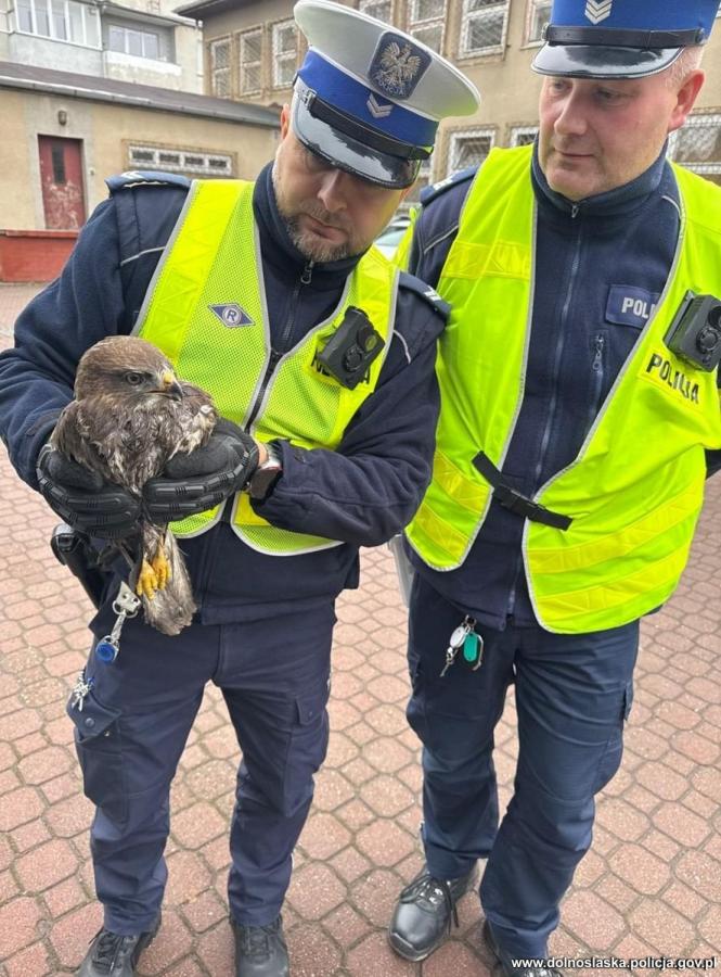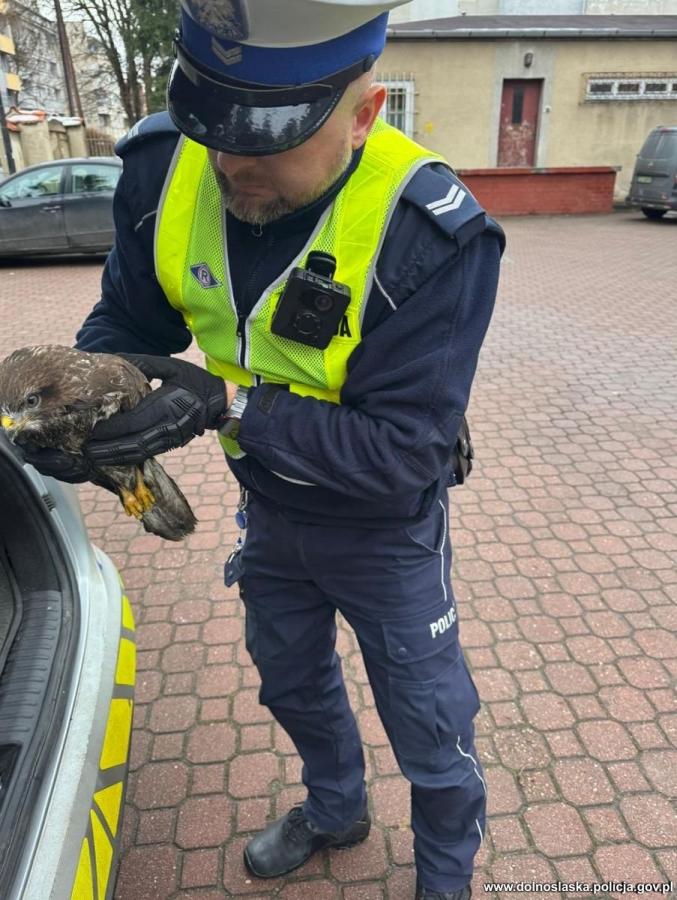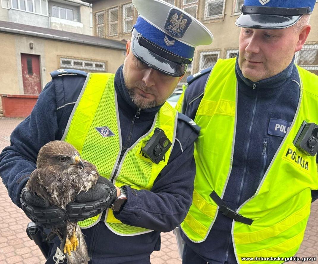 Kłodzka drogówka w nietypowej misji. Myszołów uratowany dzięki szybkiej akcji