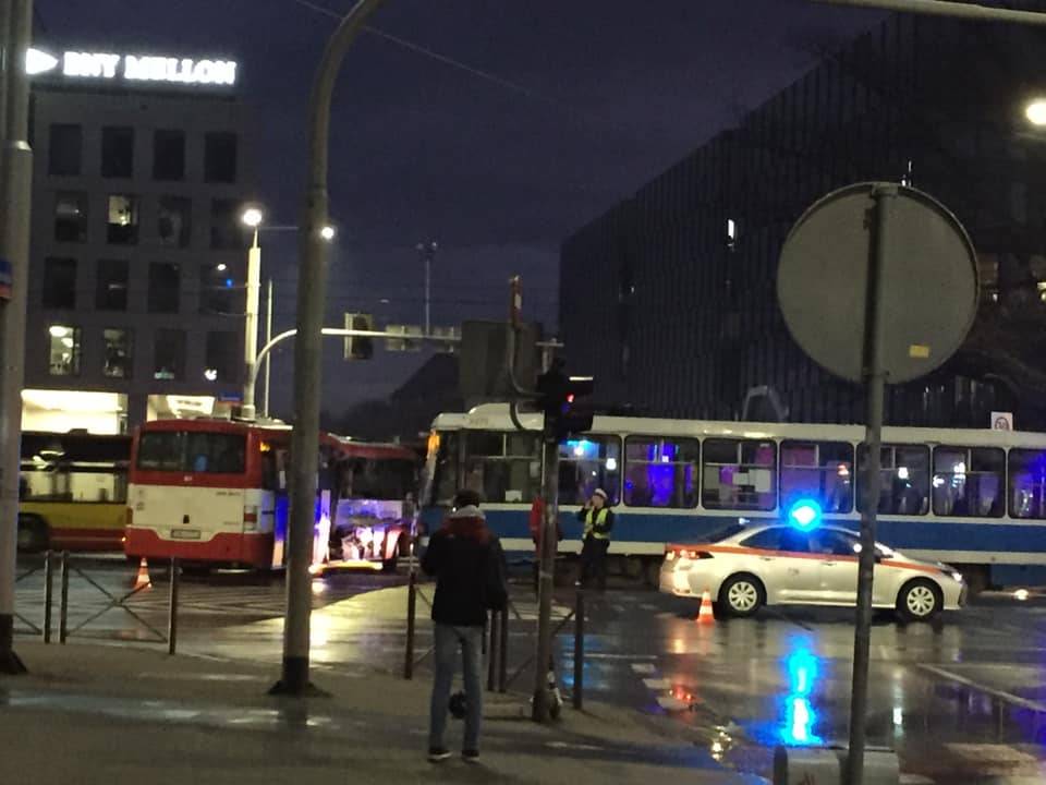Kolizja autobusu z tramwajem przy skrzyżowaniu ul. Suchej z Borowską. Spore utrudnienia przy Wroclavii