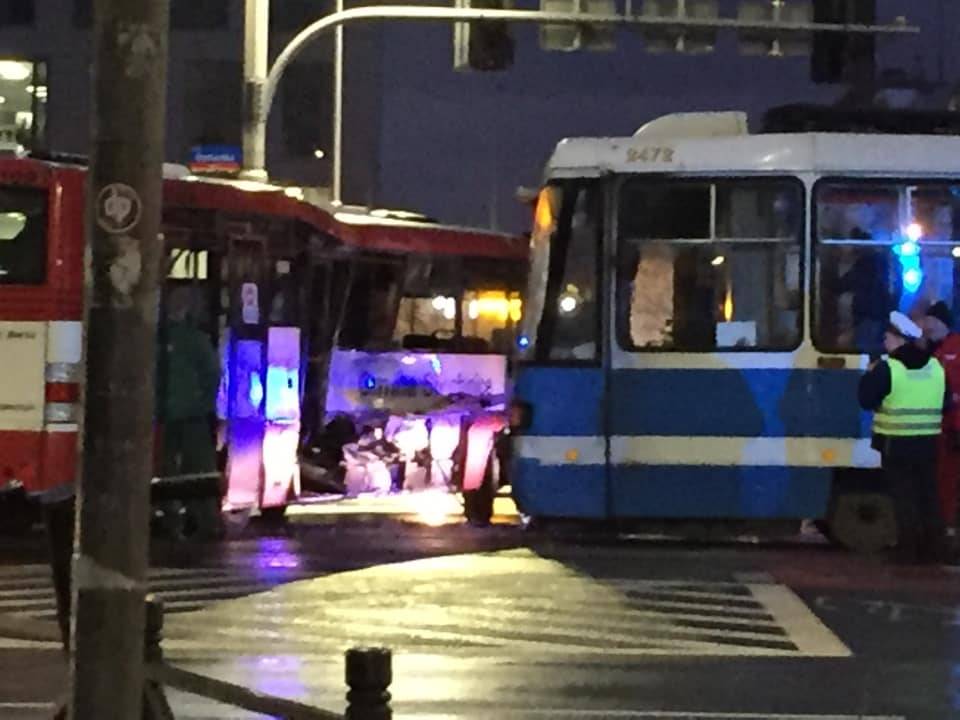 Zdjęcia Kolizja autobusu z tramwajem przy skrzyżowaniu ul. Suchej z Borowską. Spore utrudnienia przy Wroclavii - fotorelacja