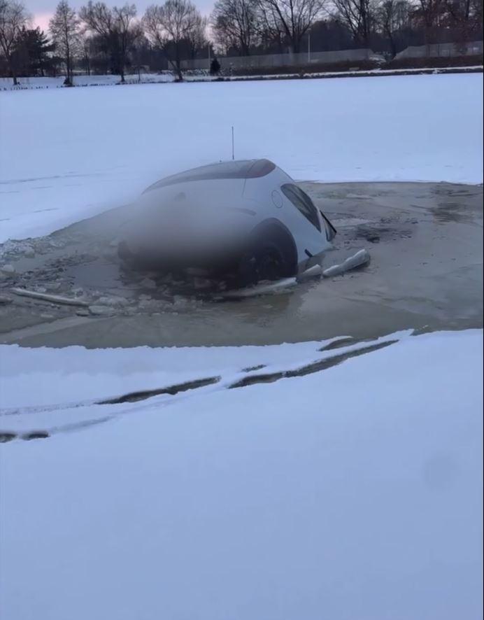 Miał być hit internetu, został wrak na dnie zbiornika. Zatopili auto na dnie zamarzniętego stawu. Nawet policja myślała, że to AI