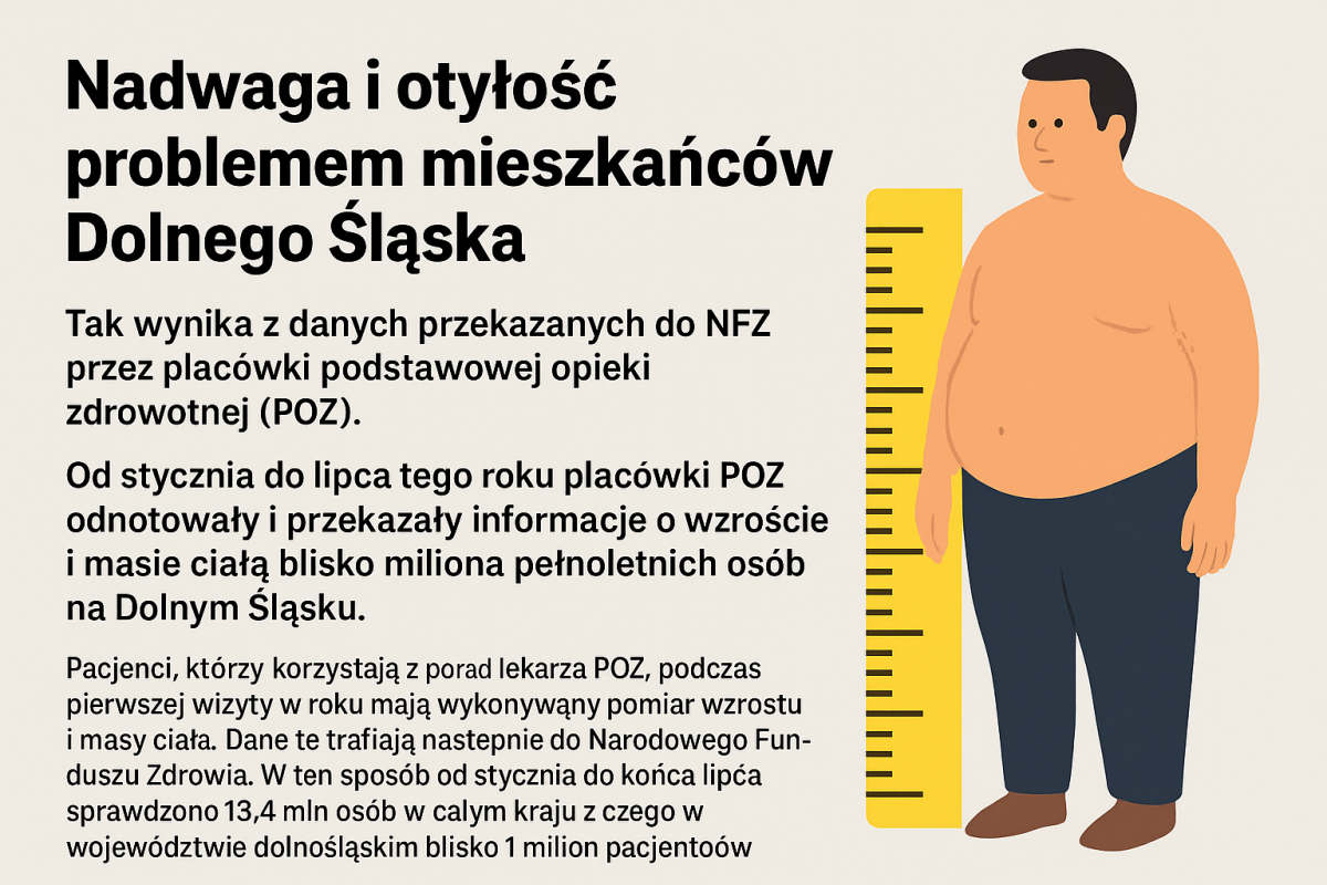 Galeria zdjęć prezentujących badania BMI u pacjentów w województwie dolnośląskim. Statystyki wykazujące odsetek osób z nadwagą, otyłością oraz prawidłową wagą. Informacje na temat znaczenia wskaźnika BMI dla zdrowia, ograniczeń oraz konieczności konsultacji z specjalistą. Zdjęcia pokazujące, jak placówki POZ na Dolnym Śląsku radzą sobie z problemem otyłości. Przypadki otyłości III stopnia i związane z nimi niebezpieczeństwa dla zdrowia. Wskazówki dotyczące edukacji pacjentów i znaczenia profilaktyki w walce z otyłością. Prezentowane są także możliwości bezpłatnych diet i planów żywieniowych oferowanych przez NFZ oraz ich korzyści dla osób z nieprawidłowym BMI. Zachęta do skorzystania ze specjalistycznego portalu DietyNFZ w celu zdrowego planowania posiłków i poprawy stanu zdrowia.
