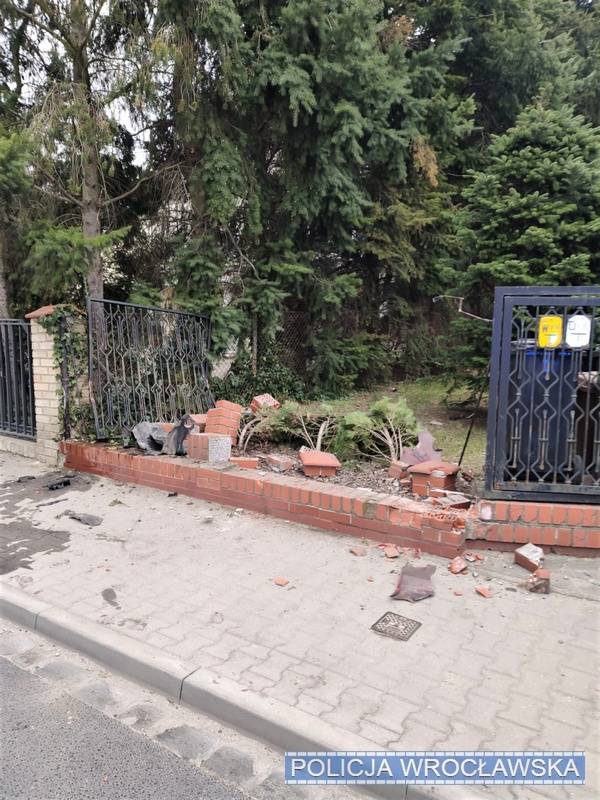 Zdjęcia O włos od tragedii. Nietrzeźwy kierowca potrącił dwoje pieszych idących chodnikiem, po czym wjechał w ogrodzenie pobliskiej posesji [FOTO] - fotorelacja