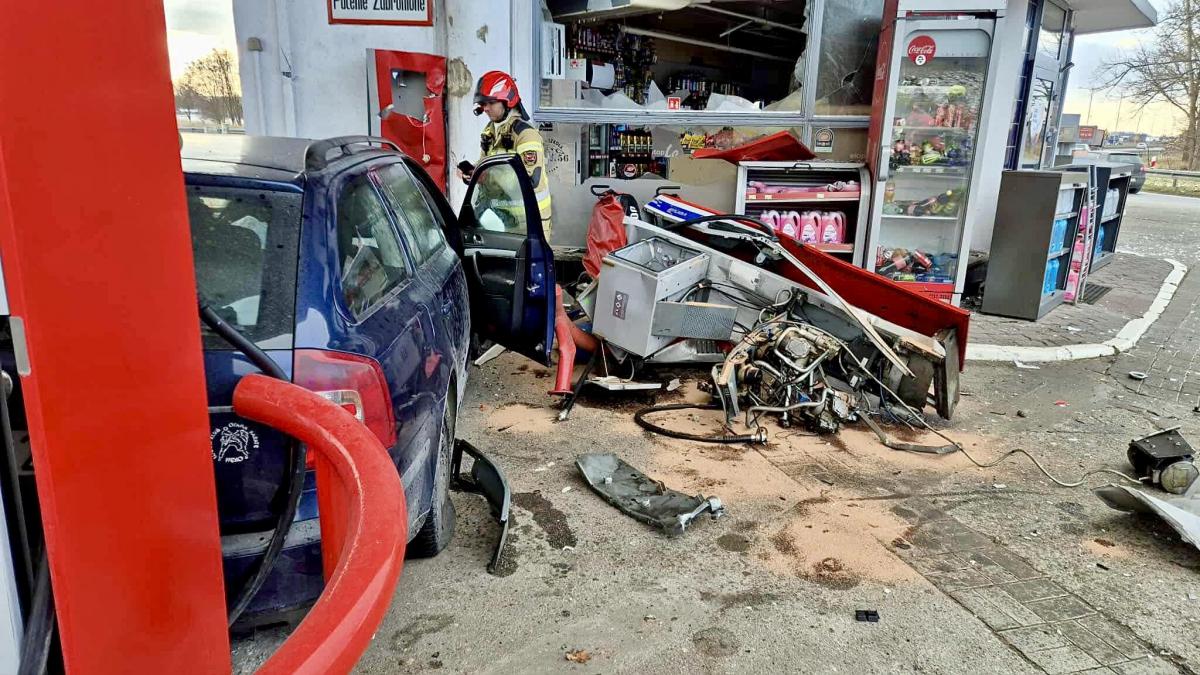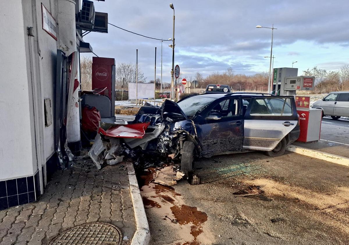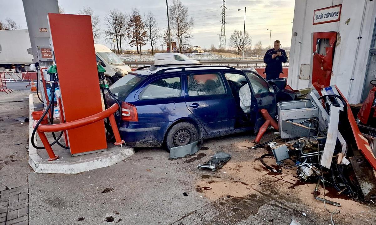 Pościg jak z filmu. Kierowca Skody uciekał przed policją i staranował stację paliw