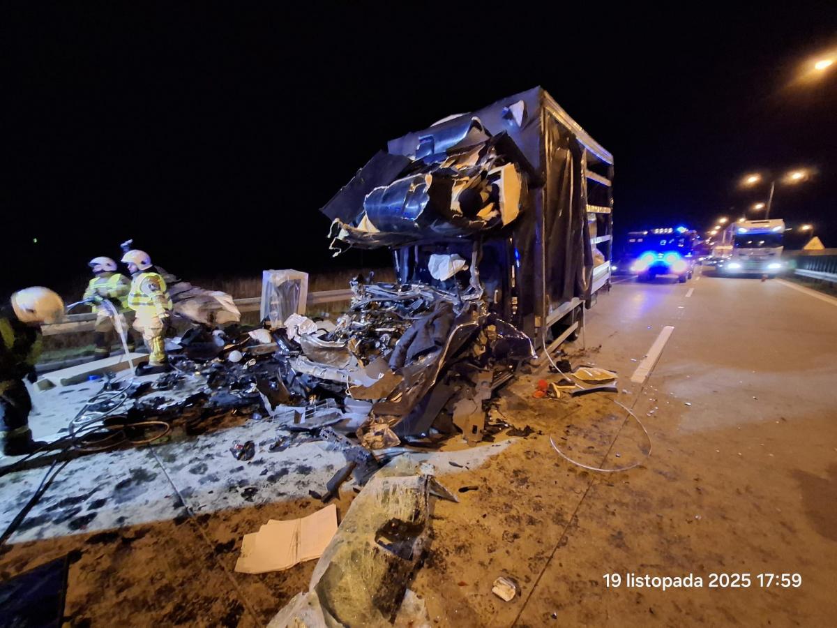 Zdjęcia POWAŻNY WYPADEK NA A4 PRZED GRANICĄ Z NIEMCAMI W JĘDRZYCHOWICACH. Bus wbił się w TIR-a, dwie osoby ciężko ranne - fotorelacja