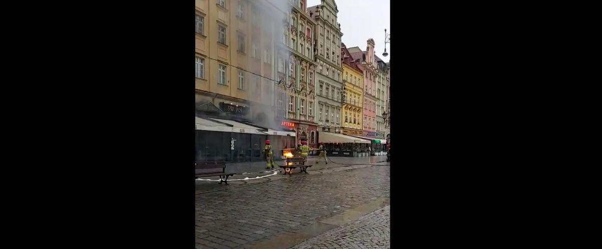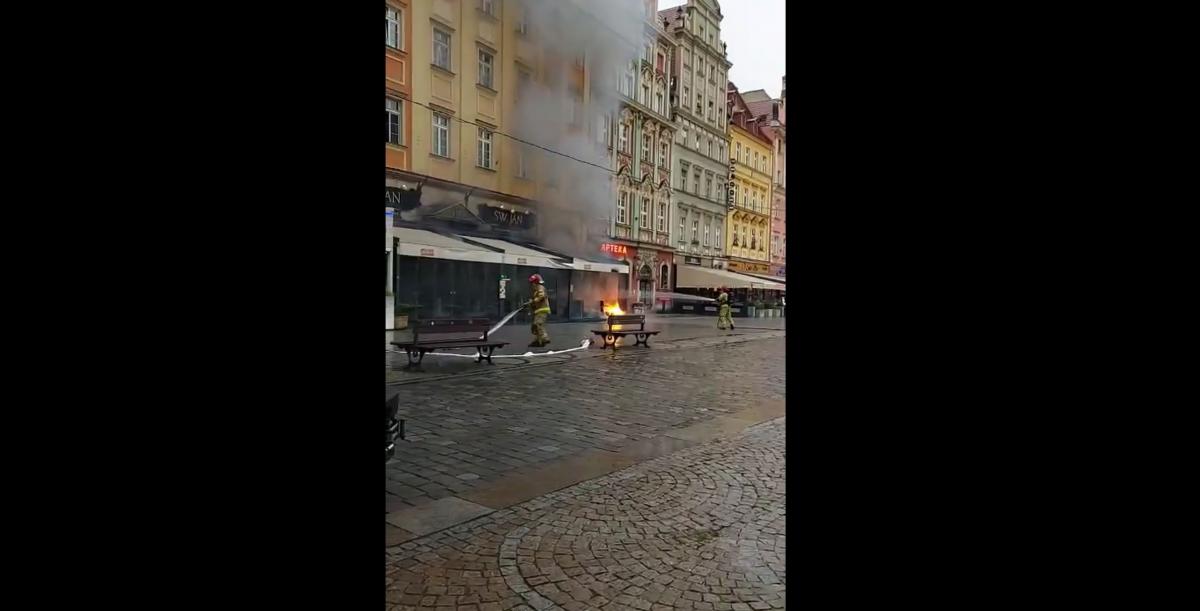 Pożar na wrocławskim Rynku. Markiza i ogródek gastronomiczny w ogniu. Jedna osoba poszkodowana