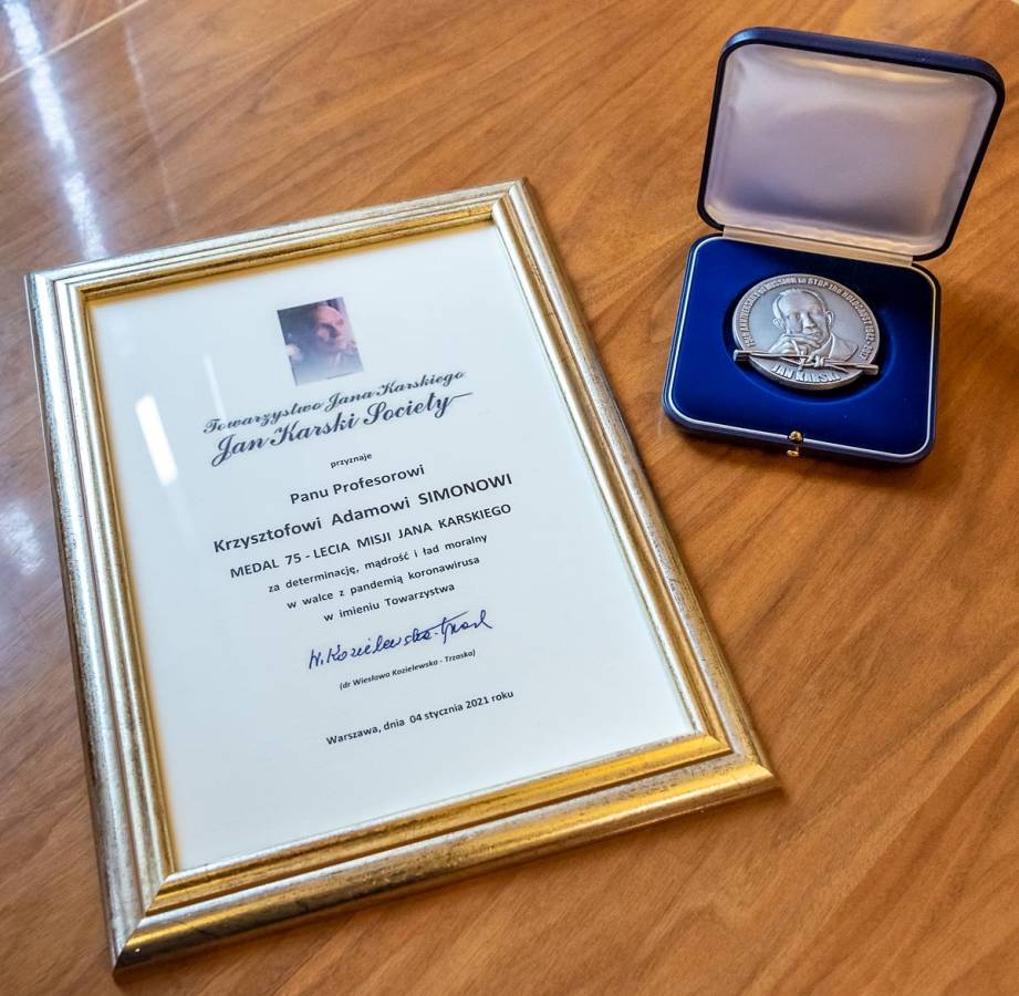 Prof. Krzysztof Simon uhonorowany Medal 75-lecia Misji Jana Karskiego