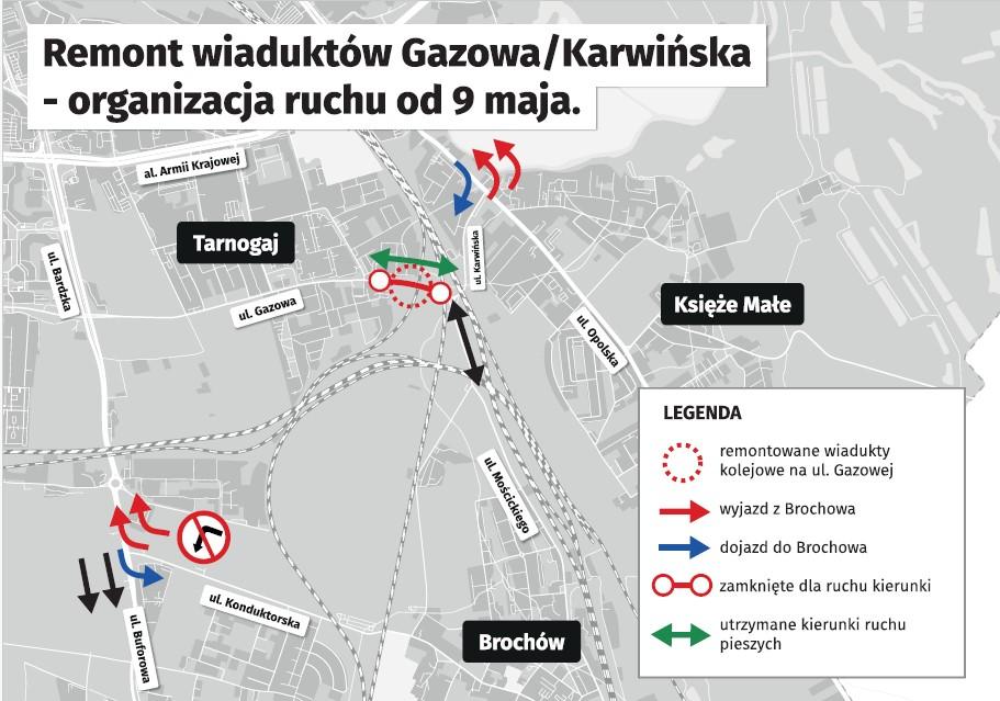 Remont wiaduktów i przebudowa skrzyżowania na Brochowie. Duże zmiany w ruchu od maja