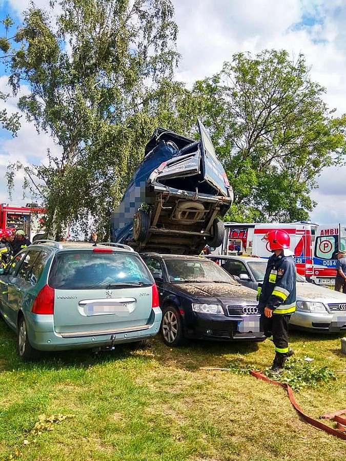 Siła uderzenia była tak duża, że kierowca wypadł z auta