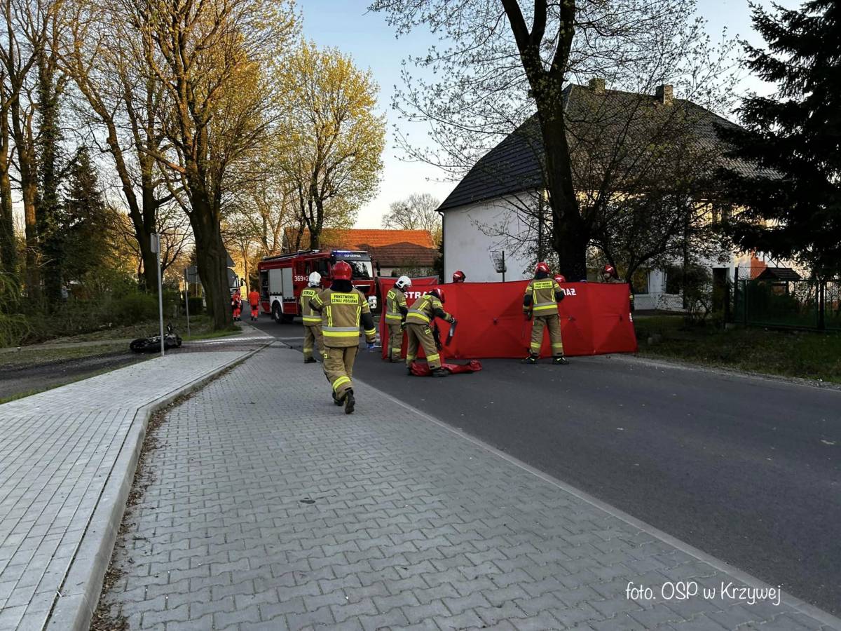 Śmierć motocyklisty w Krzywej. Najechał na próg zwalniający i uderzył w drzewo. Jego motocykl stanął w płomieniach
