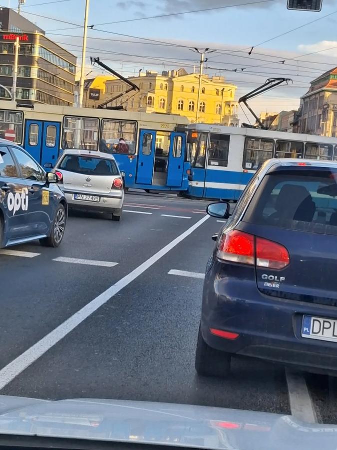 Tramwaje zderzyły się na pl. Jana Pawła II. Jedna osoba trafiła do szpitala