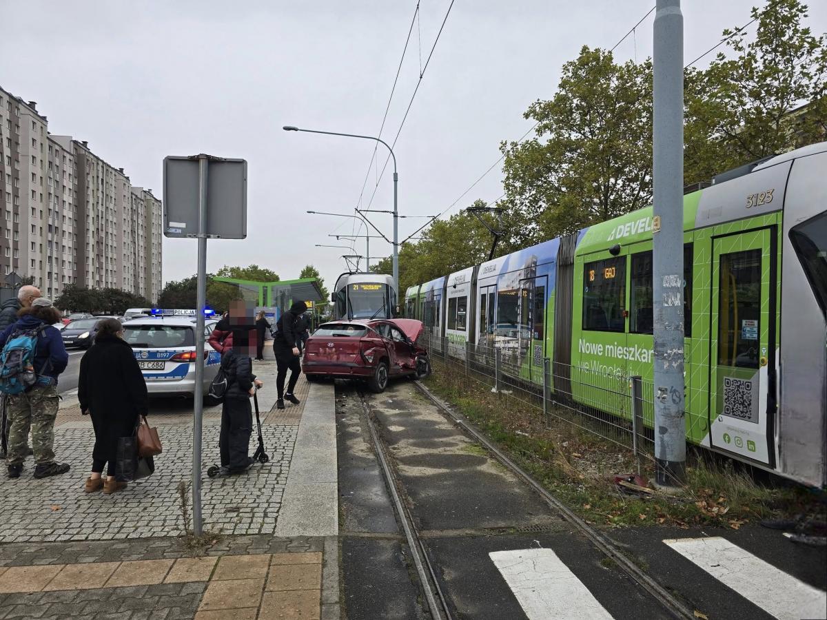 Wrocław. Tramwaj zderzył się z samochodem na Gaju. Były utrudnienia w ruchu