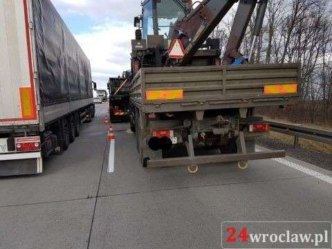 Wypadek na autostradzie z udziałem wojskowych ciężarówek