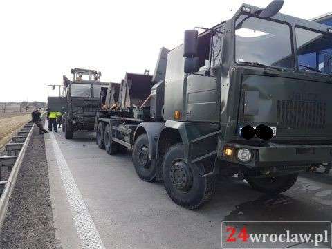 Zdjęcia Wypadek na autostradzie z udziałem wojskowych ciężarówek - fotorelacja