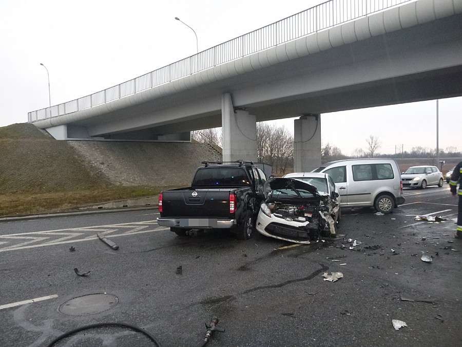 Wypadek na ul. Krzywoustego z udziałem czterech samochodów osobowych