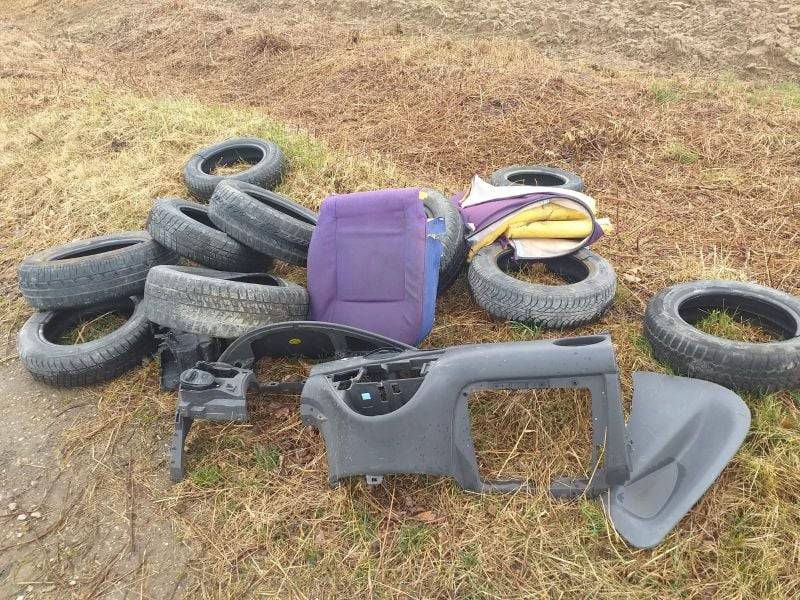 Wyrzucał śmieci na tereny rolne. Zaskoczył go widok policjantów, którzy przybyli na jego posesje by... wręczyć mandat