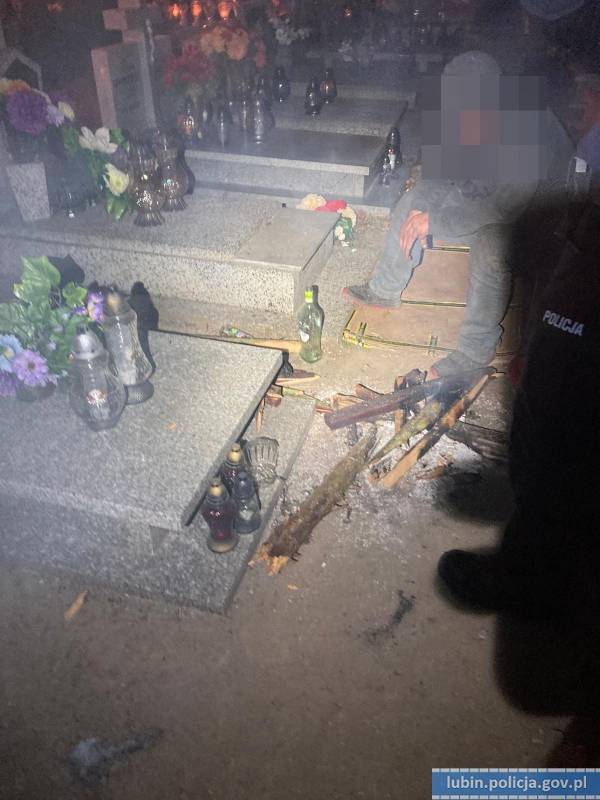 Zdjęcia Zatrzymany mężczyzna spał na nagrobku i palił ognisko smażąc kiełbaski na cmentarzu – usłyszał już zarzuty - fotorelacja