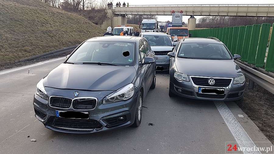 Zdjęcia Zderzenie czterech aut na autostradzie A4 - fotorelacja