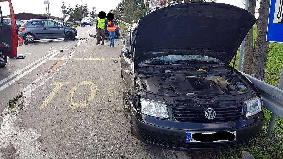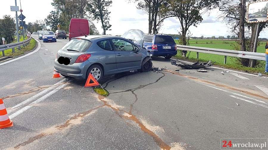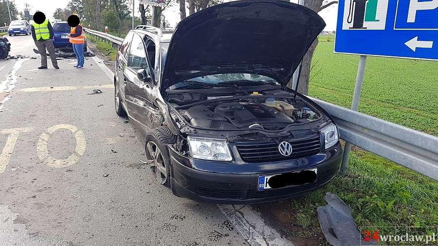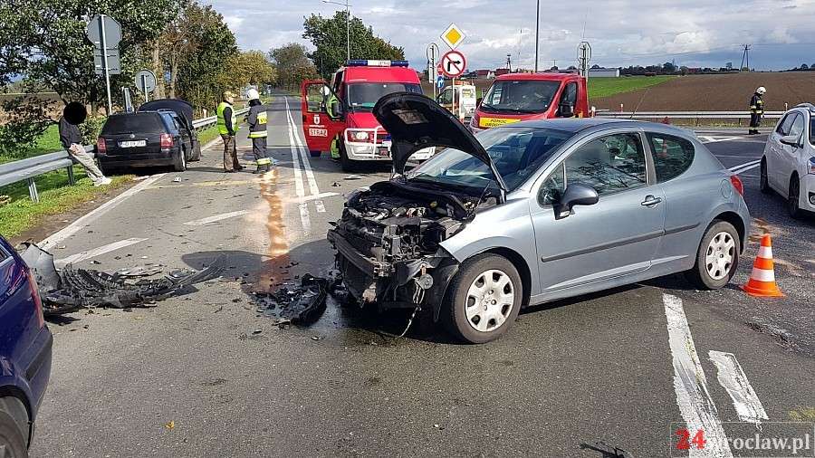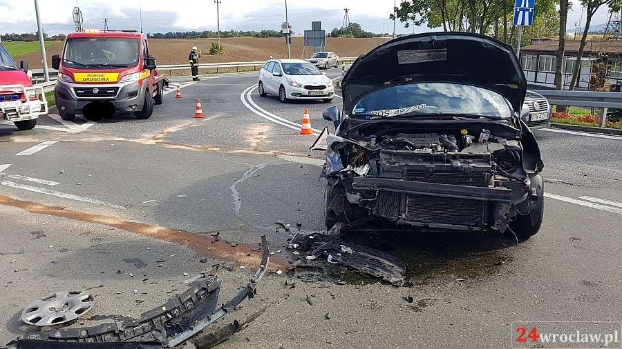 Zdjęcia Zderzenie dwóch aut na zjeździe z A4 w Kostomłotach - fotorelacja