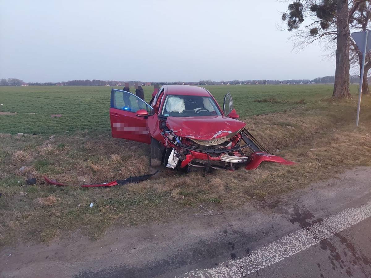 Zderzenie dwóch aut na skrzyżowaniu w gminie Kostomłoty. Jedna osoba trafiła do szpitala