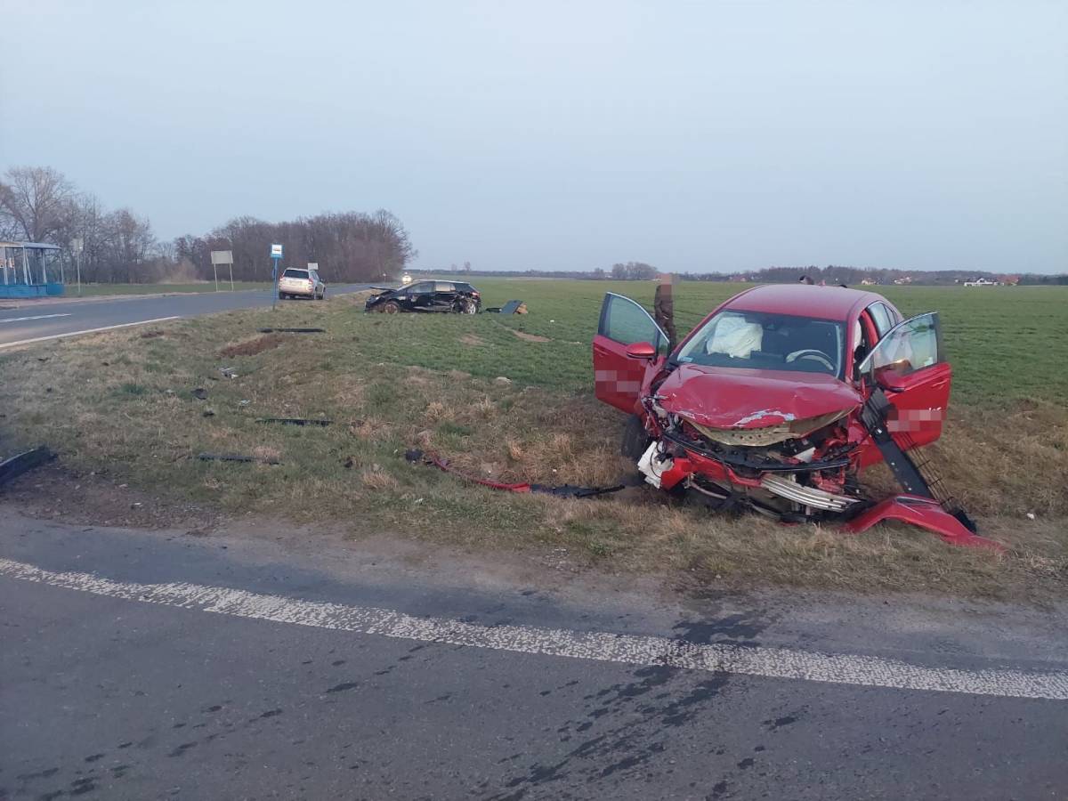Zdjęcia Zderzenie dwóch aut na skrzyżowaniu w gminie Kostomłoty. Jedna osoba trafiła do szpitala - fotorelacja