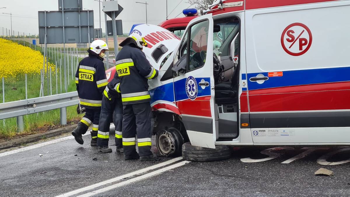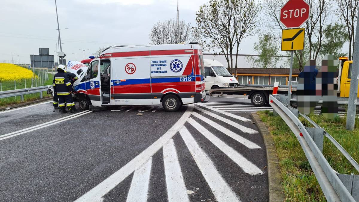 Zdjęcia Zderzenie karetki pogotowia z busem w Kostomłotach - fotorelacja