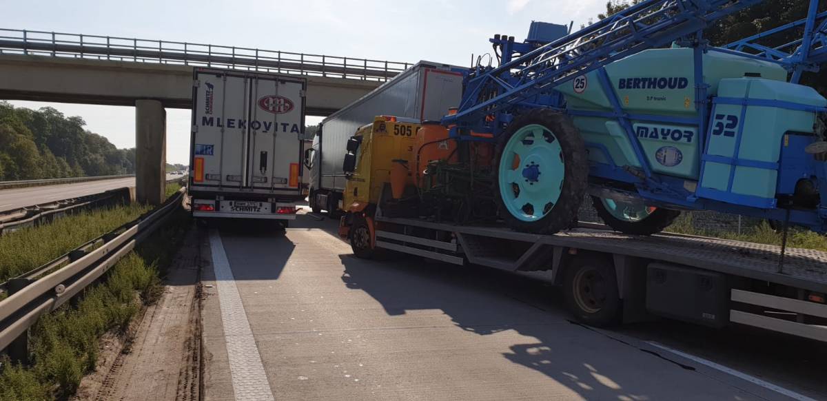 Zderzenie lawety z ciężarówką na A4. Autostrada zablokowana.