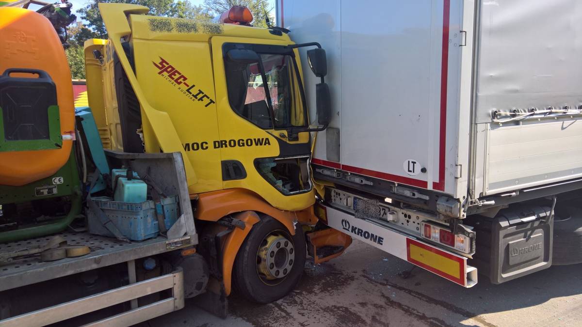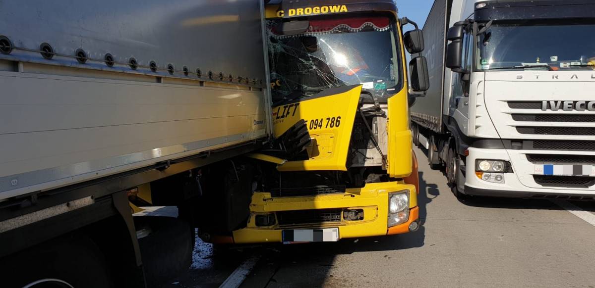 Zdjęcia Zderzenie lawety z ciężarówką na A4. Autostrada zablokowana. - fotorelacja